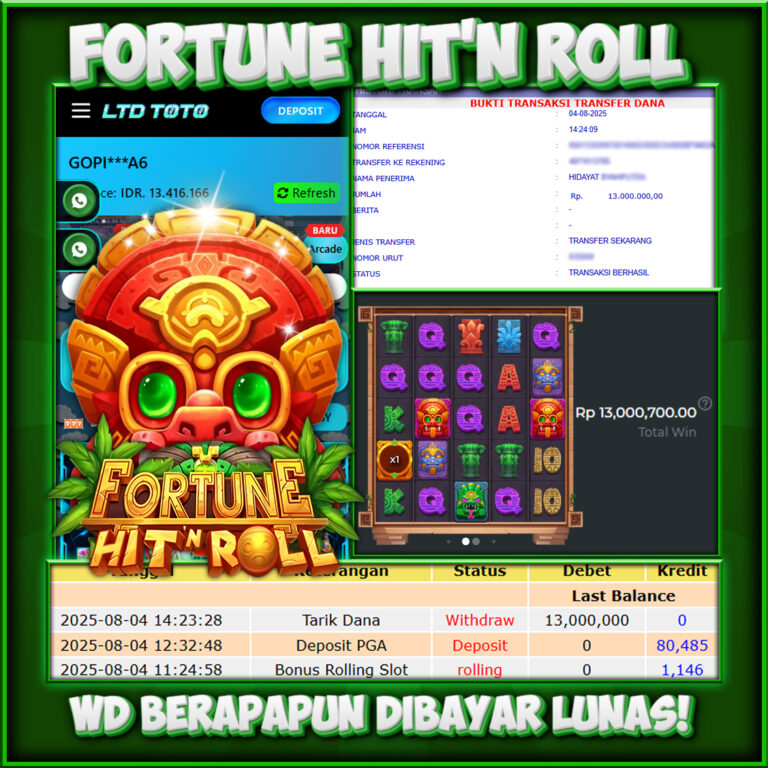 LTDTOTO JACKPOT FORTUNE HIT’N ROLL RP 13.000.000 SENIN 04 AUGUST 2025 Selamat kepada User id : GOPI***A6 Telah berhasil mendapatkan kemenangan besar pada permainan FORTUNE HIT’N ROLL, kemenangan Sebesar Rp.13.000.000, Setelah mengisi formulir withdraw dengan kurang waktu hanya 5 – 10 menit pihak LTDTOTO sudah melakukan transfer kepada pemilik User id dan dana sudah dapat di cairkan…