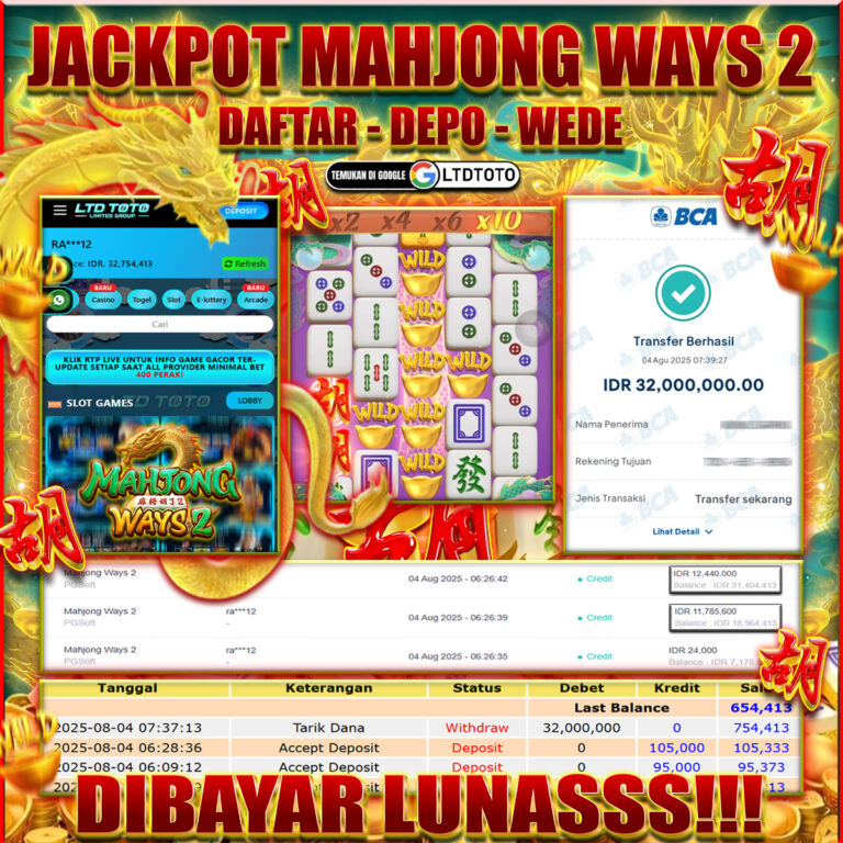 LTDTOTO JACKPOT MAHJONG WAYS 2 RP 32.000.000 DI BAYAR LUNAS!