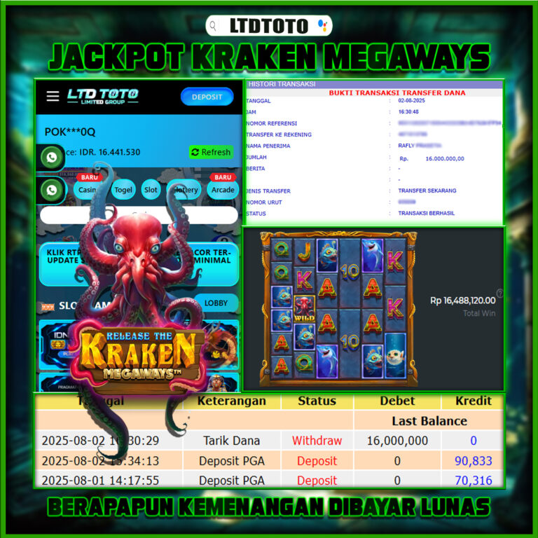 LTDTOTO JACKPOT KRAKEN MEGAWAYS RP 16.000.000 SABTU 02 AUGUST 2025 Selamat kepada User id : POK***0Q Telah berhasil mendapatkan kemenangan besar pada permainan KRAKEN MEGAWAYS, kemenangan Sebesar Rp.16.000.000, Setelah mengisi formulir withdraw dengan kurang waktu hanya 5 – 10 menit pihak LTDTOTO sudah melakukan transfer kepada pemilik User id dan dana sudah dapat di cairkan oleh pemenang….