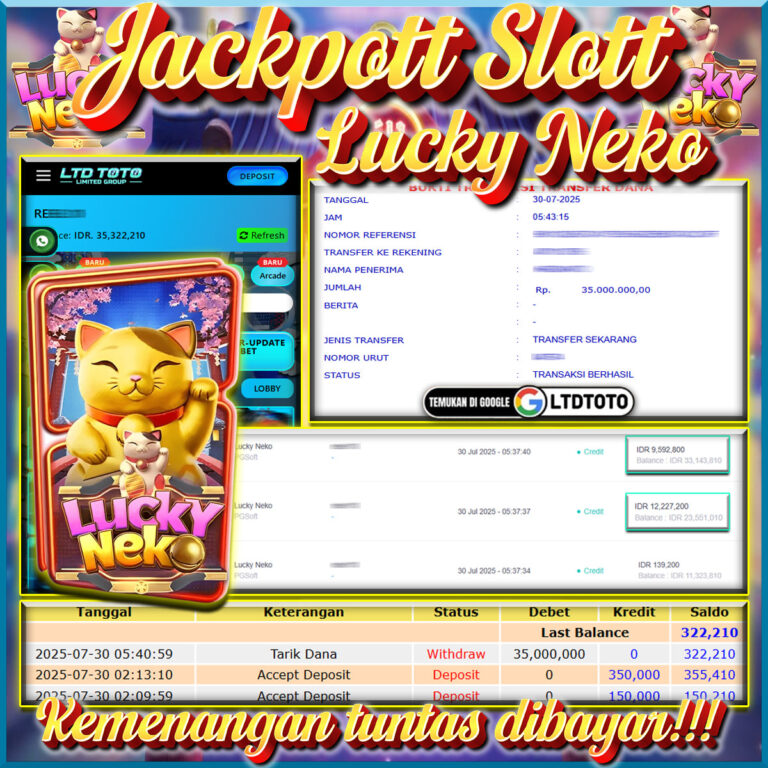 LTDTOTO JACKPOT LUCKY NEKO RP 35.000.000 DI BAYAR LUNAS!