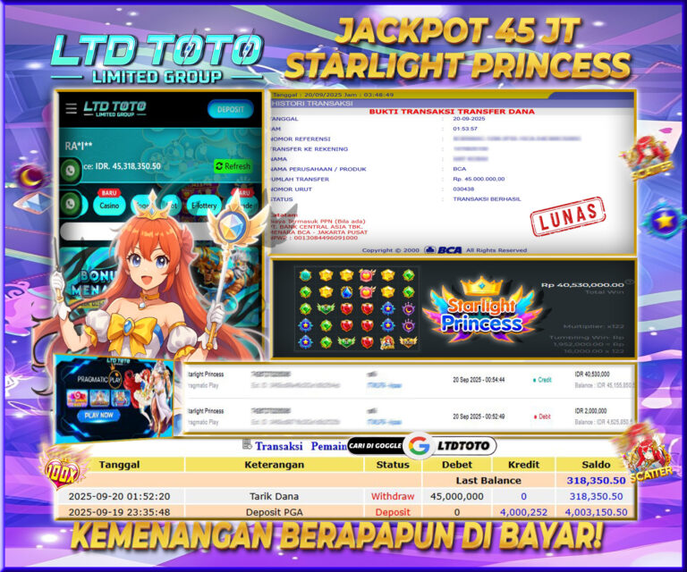 LTDTOTO JACKPOT SLOT STARLIGHT PRINCESS RP 45.000.000 DI BAYAR LUNAS!