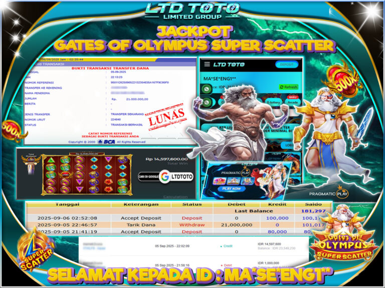 LTDTOTO JACKPOT GATES OF OLYMPUS SUPER SCATTER RP 21.000.000 SABTU 06 SEPTEMBER 2025 Selamat kepada User id : MA*SE*ENG1** Telah berhasil mendapatkan kemenangan besar pada permainan GATE OF OLYMPUS SUPER SCATTER, kemenangan Sebesar Rp.21.000.000, Setelah mengisi formulir withdraw dengan kurang waktu hanya 5 – 10 menit pihak LTDTOTO sudah melakukan transfer kepada pemilik User id dan dana sudah dapat di cairkan…