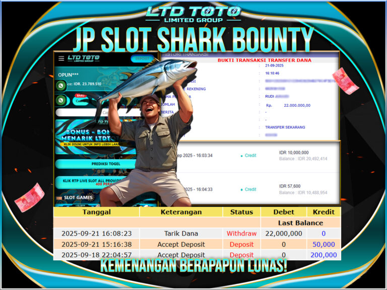 LTDTOTO JACKPOT SLOT SHARK BOUNTY RP 22.000.000 DI BAYAR LUNAS!