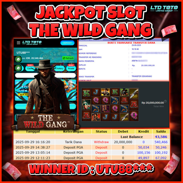 LTDTOTO JACKPOT SLOT THE WILD GANG RP 20.000.000 SENIN 29 SEPTEMBER 2025 Selamat kepada User id : UTU88*** Telah berhasil mendapatkan kemenangan besar pada permainan SLOT THE WILD GANG , kemenangan Sebesar Rp.20.000.000, Setelah mengisi formulir withdraw dengan kurang waktu hanya 5 – 10 menit pihak LTDTOTO sudah melakukan transfer kepada pemilik User id dan dana sudah dapat di…