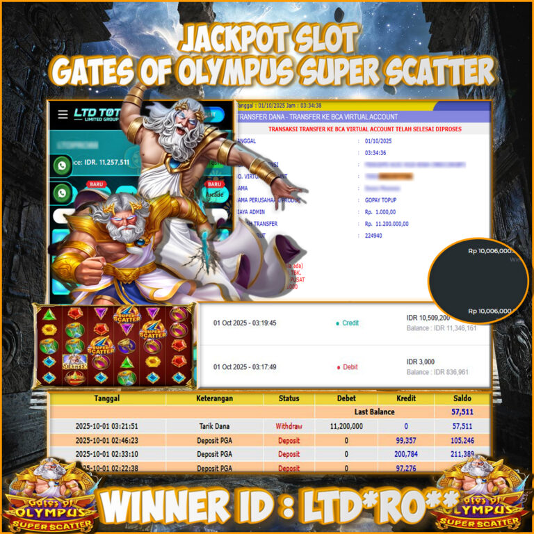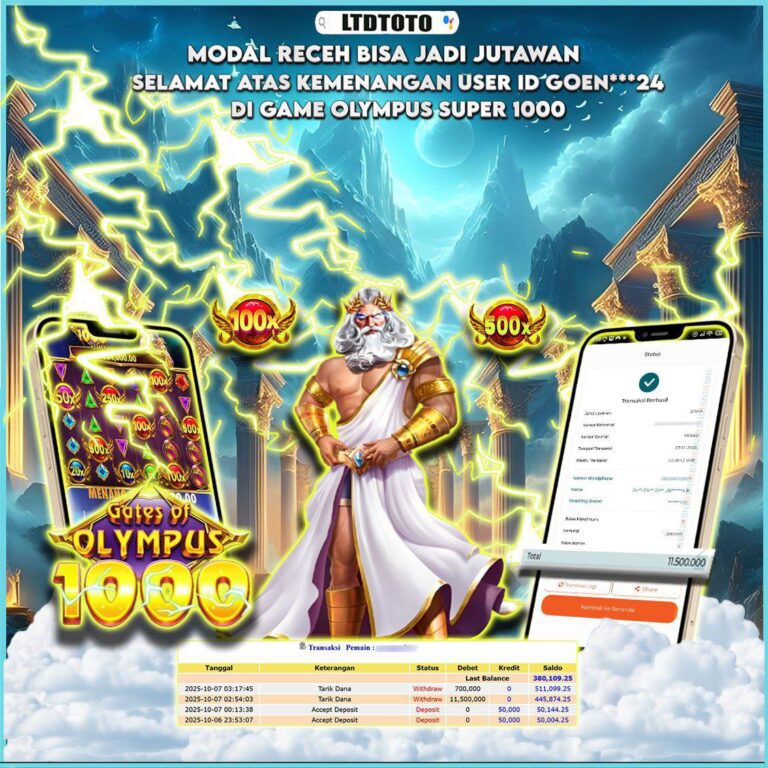 LTDTOTO JACKPOT GATES OF OLYMPUS SUPER SCATTER RP 11.200.000 RABU 01 OKTOBER 2025 Selamat kepada User id : LTD*RO** Telah berhasil mendapatkan kemenangan besar pada permainan SLOT GATES OF OLYMPUS SUPER SCATTER, kemenangan Sebesar Rp.11.200.000, Setelah mengisi formulir withdraw dengan kurang waktu hanya 5 – 10 menit pihak LTDTOTO sudah melakukan transfer kepada pemilik User id dan dana…
