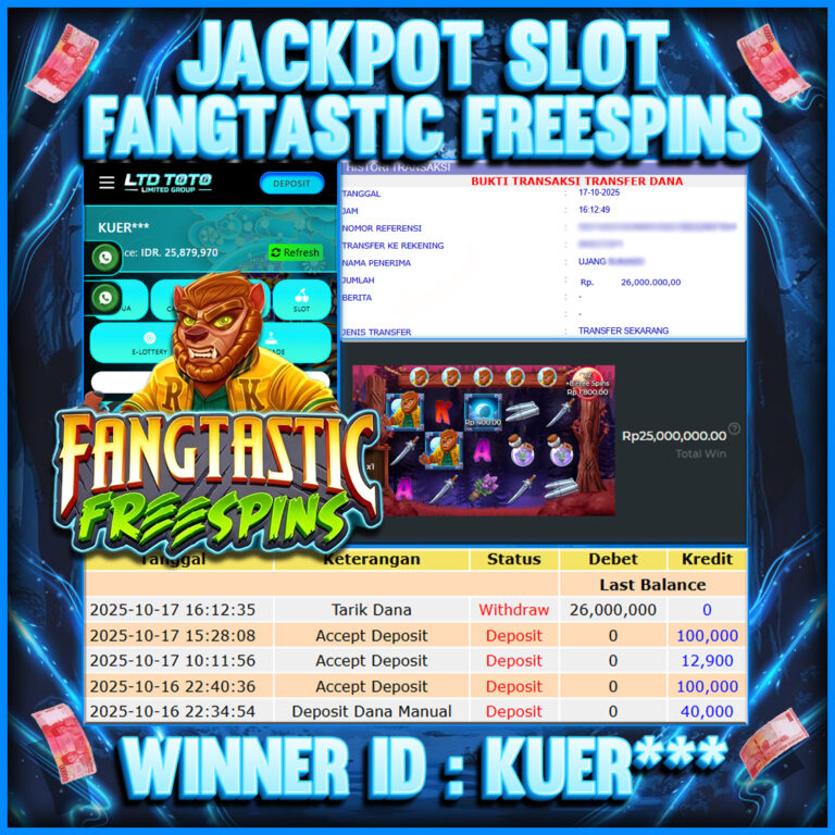 LTDTOTO JACKPOT FANGTASTIC FREESPINS RP 26.000.000 JUMAT 17 OKTOBER 2025 Selamat kepada User id : KUER*** Telah berhasil mendapatkan kemenangan besar pada permainan SLOT FANGTASTIC FREESPINS, kemenangan Sebesar Rp.26.000.000, Setelah mengisi formulir withdraw dengan kurang waktu hanya 5 – 10 menit pihak LTDTOTO sudah melakukan transfer kepada pemilik User id dan dana sudah dapat di cairkan oleh pemenang….