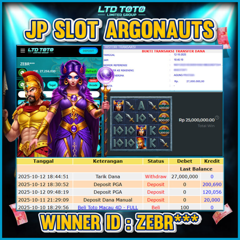 LTDTOTO JACKPOT ARGONAUTS RP 27.000.000 MINGGU 12 OKTOBER 2025 Selamat kepada User id : ZEBR*** Telah berhasil mendapatkan kemenangan besar pada permainan SLOT ARGONAUTS, kemenangan Sebesar Rp.27.000.000, Setelah mengisi formulir withdraw dengan kurang waktu hanya 5 – 10 menit pihak LTDTOTO sudah melakukan transfer kepada pemilik User id dan dana sudah dapat di cairkan oleh pemenang. Bukti pembayaran…