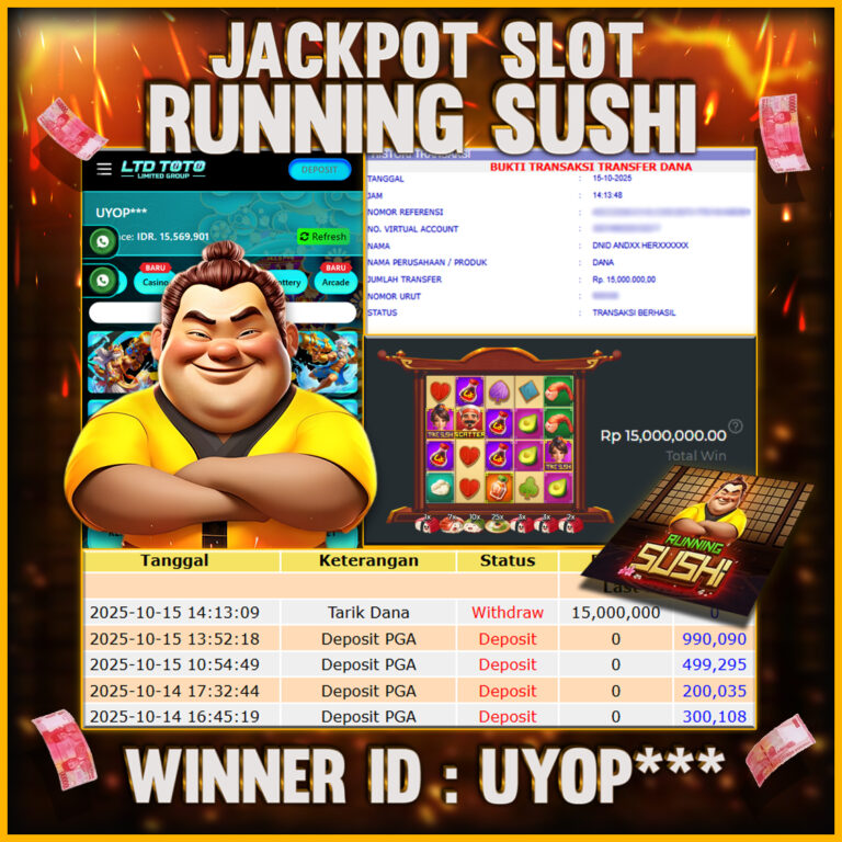 LTDTOTO JACKPOT RUNNING SUSHI RP 15.000.000 RABU 15 OKTOBER 2025 Selamat kepada User id : UYOP*** Telah berhasil mendapatkan kemenangan besar pada permainan SLOT RUNNING SUSHI, kemenangan Sebesar Rp.15.000.000, Setelah mengisi formulir withdraw dengan kurang waktu hanya 5 – 10 menit pihak LTDTOTO sudah melakukan transfer kepada pemilik User id dan dana sudah dapat di cairkan oleh pemenang….