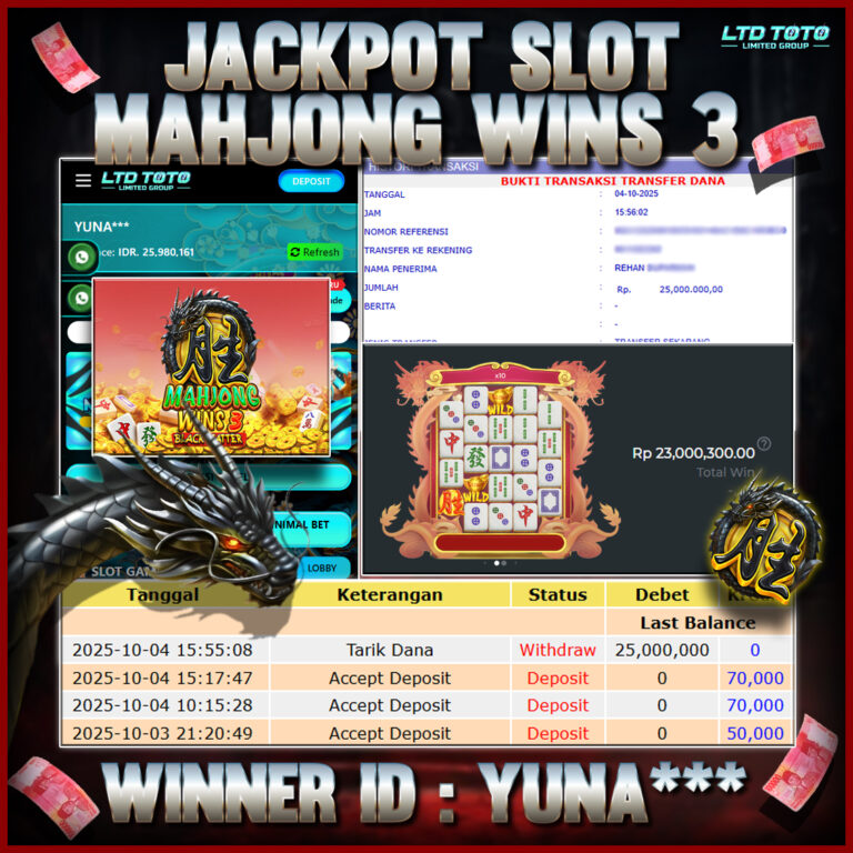 LTDTOTO JACKPOT SLOT MAHJONG WINS GONG XI FA CAI RP 20.000.000 SENIN 22 SEPTEMBER 2025 Selamat kepada User id : MA*Z**Telah berhasil mendapatkan kemenangan besar pada permainan SLOT MAHJONG WINS GONG XI FA CAI , kemenangan Sebesar Rp.20.000.000, Setelah mengisi formulir withdraw dengan kurang waktu hanya 5 – 10 menit pihak LTDTOTO sudah melakukan transfer kepada pemilik User id…
