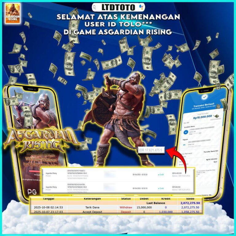 LTDTOTO ASGARDIAN RISING RP 15.000.000 RABU 08 OKTOBER 2025 Selamat kepada User id : TOLO*** Telah berhasil mendapatkan kemenangan besar pada permainan SLOT ASGARDIAN RISING, kemenangan Sebesar Rp.15.000.000, Setelah mengisi formulir withdraw dengan kurang waktu hanya 5 – 10 menit pihak LTDTOTO sudah melakukan transfer kepada pemilik User id dan dana sudah dapat di cairkan oleh pemenang. Bukti pembayaran…