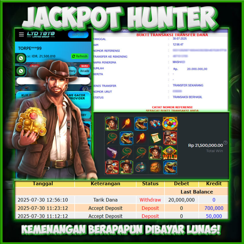 LTDTOTO JACKPOT SLOT HUNTER RP 20.000.000 RABU 30 JULY 2025