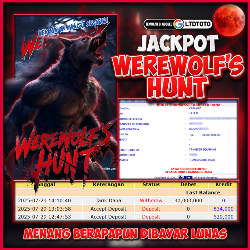 LTDTOTO JACKPOT WEREWOLFS HUNT RP 30.000.000 SELASA 29 JULY 2025